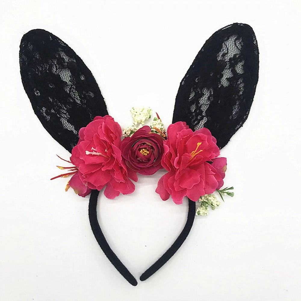 여자 여자 레이스 토끼 머리띠 토끼 귀 할로윈 파티 모자를 쓰고 있죠 헤어 액세서리 큰 레이스 토끼 귀 머리띠 머리 후프 Aliexpress Apparel Accessories
